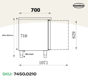De poten zijn 180-240mm, de hoogte van het aanrecht is 890-950mm.